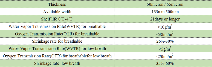 1. 優れた酸素バリア性と水蒸気バリア性、高い収縮率、低温での優れた柔軟性。チーズの梱包に特に適しています。